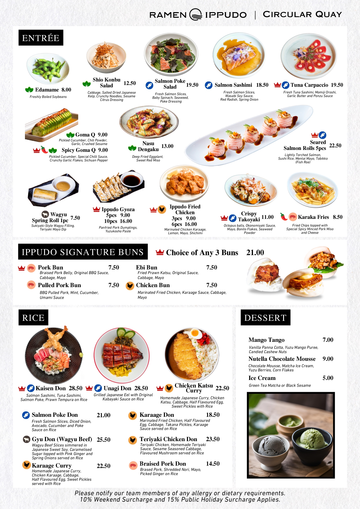 Thursday to Sunday: Lunch and dinner open from 12pm to 8:30 pm (no break between lunch and dinner operations)